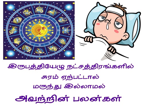 இருபத்தியேழு நட்சத்திரங்களில் சுரம் ஏற்பட்டால் மருந்து இல்லாமல் அவற்றின் பலன்கள்