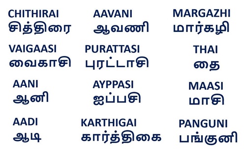 தமிழ் நாட்காட்டியில் சித்திரை, வைகாசி, ஆனி, ஆடி, ஆவணி, புரட்டாசி, ஐப்பசி, கார்த்திகை, மார்கழி, தை, மாசி, பங்குனி ஆகியன பன்னிரண்டு மாதங்கள் ஆகும். இவை குறித்த பழமொழிகள் அக்காலம் தொட்டு வழக்கினில் இருந்து வந்துள்ளது.
