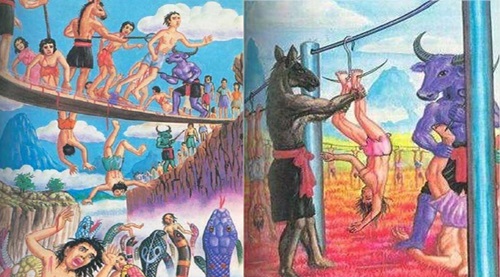 மிருகம் காணப்படும். இவை பாவிகளைச் சூழ்ந்து, முட்டி மோதி பலவகையிலும் ரணகளப்படுத்தி துன்புறுத்தும்.