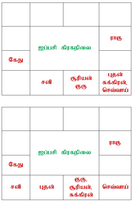 குரு - சுவாதி - துலாம். சுக் - அஸ்தம், சித்திரை, சுவாதி - கன்னி, துலாம்.