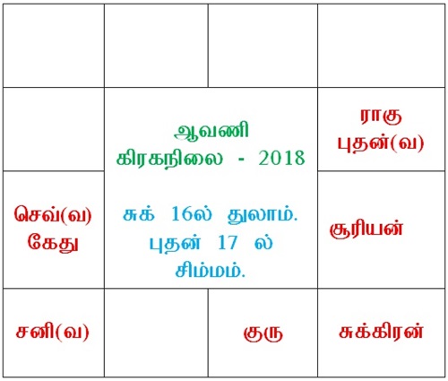 சூரியன் - 1 -13 மகம், 14 - 27 பூரம், சிம்மம், 28 முதல் உத்ரம் சிம்.
