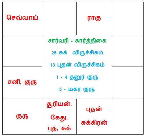குரு - 8 – 21 உத்திராடம் 4 ல், 21 ல் மகரம். 22 திருவோணம் 1 ல் மகரம்.