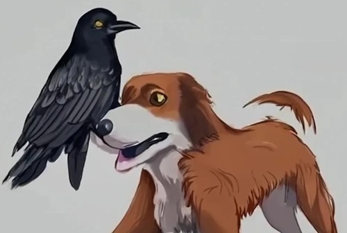 அந்த நாய்க்குட்டி அங்கு வரும் காகத்துடன் நட்பாக இருந்தது.