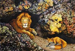 இதைத் தவிர வேறு ஒன்றும் கிடைக்கவில்லை." என்றது ஆண்சிங்கம். ஆனால் பெண் சிங்கமோ அந்த நரிக்குட்டி மிகமிகச் சிறியதாய் இருந்ததால் அதைக் கொன்று இரையாக்குவதற்குப் பதிலாக இரண்டோடு மூன்றாய் வளர்க்க ஆரம்பித்தது.