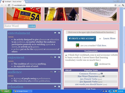 இந்த இணையதளத்தில் உள்ள காலிப்பெட்டியில் ஆங்கிலச் சொல் ஒன்றி உள்ளீடு செய்து அதன் அருகிலுள்ள தேடுதல் பொத்தானைச் சொடுக்கினால் அந்தச் சொல் குறித்த சில தகவல்களை அளிக்கிறது. அந்தத் தகவலிலுள்ள சில முக்கியமான சொற்கள் வேறு நிறத்திலிருக்கின்றன். இந்தச் சொற்களின் மேல் வைத்துச் சொடுக்கினால் அந்தச் சொற்களுக்கான விளக்கமும் அதன் கீழ் பகுதியில் கிடைக்கிறது.