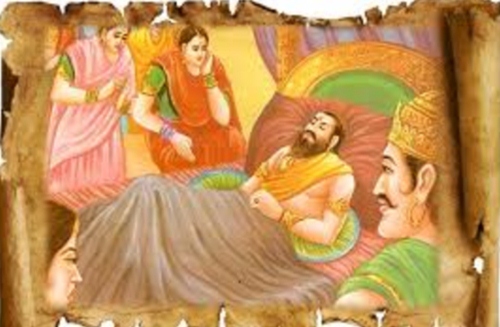 வசிட்டர், கைகேயியிடம் நீ உன் கணவனின் உயிர் உடலை விட்டுச் செல்லும் துன்பத்தை நினைக்காமல், தாட்சண்யம் இல்லாமல் பேசுகிறாயே என்று கூறுகிறார். (நகர் நீங்கு படலம் 336)