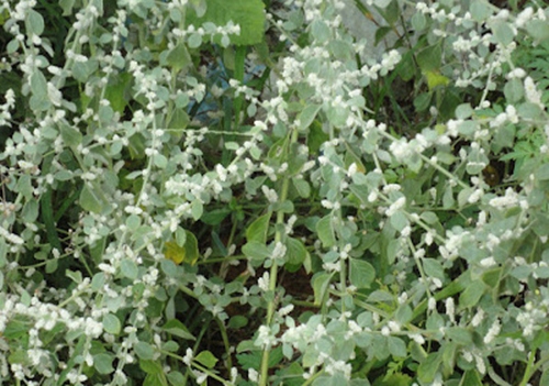 பூளை, ஆவிரை, எருக்கொடு, பிணித்து, பாத்து" (கலித்தொகை 138-7)