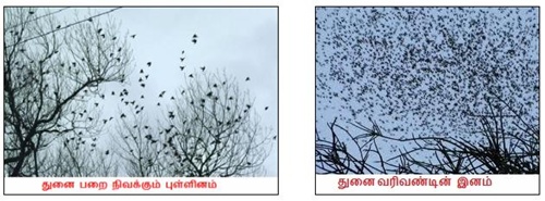இது பறவைகள் வாப்பறையாக மேலெழும் காட்சி. இன்னொரு காட்சியும் சங்க இலக்கியத்தில் நமக்குக் கிடைக்கிறது. அதற்குக் கொடுக்கப்பட்ட உவமை அழகினும் அழகு! அதைப் பார்ப்போமா?
