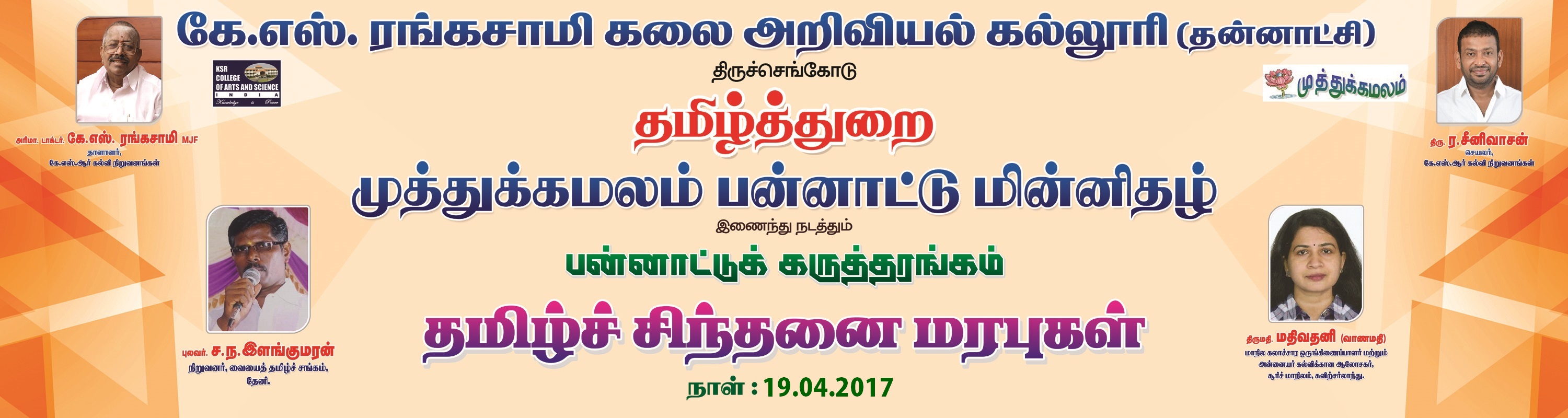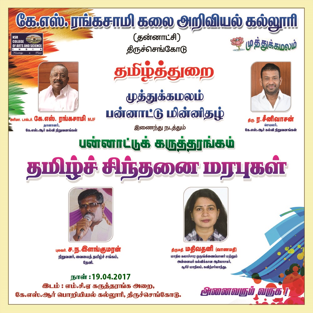 தமிழ்ச் சிந்தனை மரபுகள் - பன்னாட்டுக் கருத்தரங்கக் கோவியினைப் புலவர் ச. ந. இளங்குமரன் அவர்கள் வெளியிட, முதல் பிரதியினைத் திருச்செங்கோடு, கே.எஸ். ரங்கசாமி கலை அறிவியல் கல்லூரி (தன்னாட்சி) முதல்வர் முனைவர் வே. இராதாகிருஷ்ணன் அவர்கள் பெற்றுக் கொண்டார்.