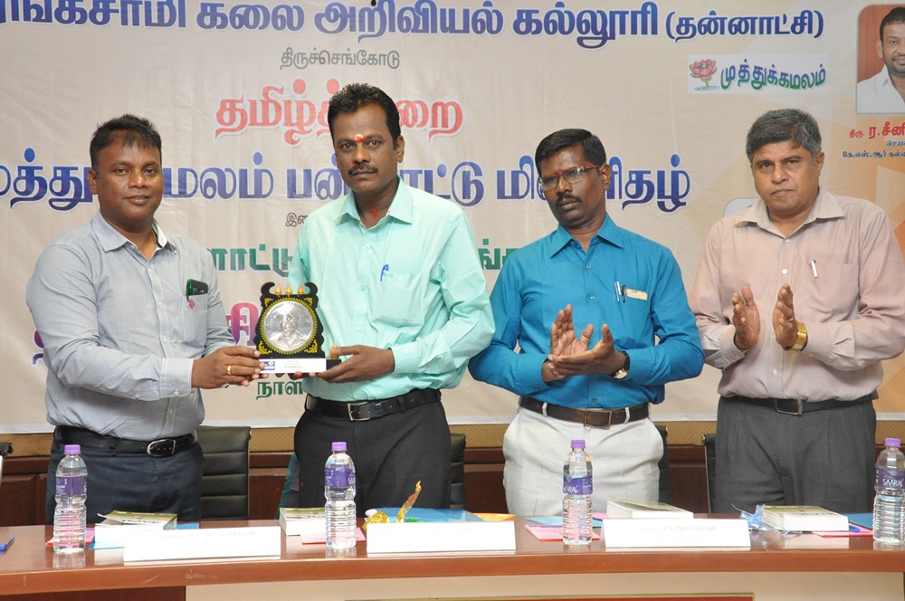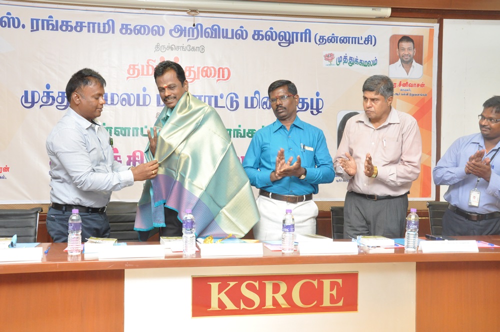 முத்துக்கமலம் இணைய இதழின் ஆசிரியர் தேனி மு. சுப்பிரமணி அவர்களுக்குத் திருச்செங்கோடு, கே. எஸ். ஆர் மகளிர் கலை அறிவியல் கல்லூரி முதல்வர், முனைவர் மா. கார்த்திகேயன் அவர்கள் பொன்னாடை போர்த்தி நினைவுப் பரிசு அளித்த படங்கள்