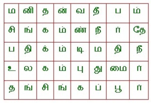 கட்டங்கள் அமைத்து அக்கட்டங்களுக்குள் சொற்களை நிரப்பி சில குறிப்புகளைத் தந்து அக்குறிப்புகளைக் கொண்டு கட்டத்தில் உள்ள சொற்களைக் கண்டுபிடிக்கச் செய்தல்.