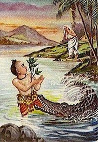முதலை சிறுவனை விட்டது. அத்துடன் சிவனாக உருவெடுத்தது.