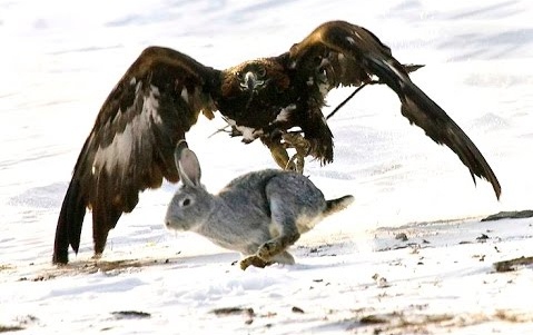 கழுகு பறந்து செல்லும் போது, அதன் பார்வையில் ஒரு முயல் தென்பட்டது.