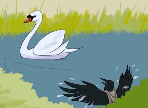 அந்தப் பறவைகளைப் போல நாமும் தண்ணீரில் நீந்தினால் தன் சிறகுகளில் இருக்கும் கரிய நிறம் போய் வெண்மை நிறம் வந்துவிடலாம் என எண்ணியது.