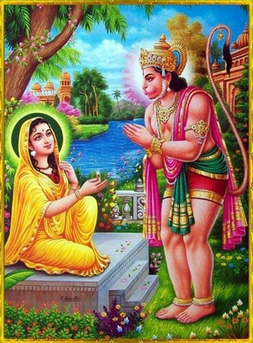 அனுமன் கூறியதைக் கேட்டு மகிழ்ந்த சீதை, “அனுமனே, நான் முன்பொரு முறை உயிர் துறக்க நினைத்த நேரத்தில், நீ வந்து எனக்கு ஆறுதல் கூறிக் காப்பாற்றினாய். இப்போதும் ராமபிரான் வெற்றி பெற்றச் செய்தியை நீயே வந்து எனக்குத் தெரிவித்தாய். ஏற்கெனவே உனக்கு நான் சிரஞ்சீவியாக இருக்கும் வரத்தைத் தந்துவிட்டேன். முன்பை விடவும் அதிகம் சந்தோஷம் தரும் செய்தியை இப்போது கொண்டு வந்திருக்கிறாய். உனக்கு என்ன வரம் வேண்டுமோ கேள்” என்றார்.