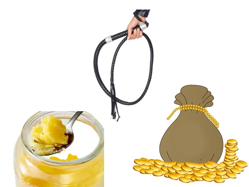 ஒன்று, அவன் விற்கும் நெய் முழுவதும் அவனேக் குடிக்கவேண்டும் அல்லது இரண்டு, 100 கசையடி பெற்றுக் கொள்ள வேண்டும் அல்லது மூன்று 100 பொற்காசுகள் அபராதமாகச் செலுத்த வேண்டும்.
