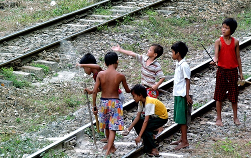 ரயில் வராத தண்டவாளத்தில் ஒரு குழந்தை விளையாடிக் கொண்டிருக்கிறது.