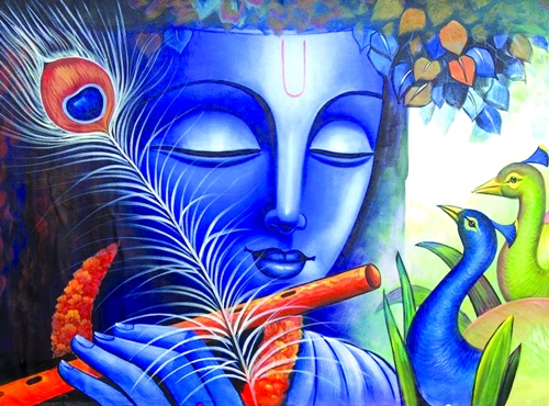கிருஷ்ணர் தனது புல்லாங்குழலை அசைக்க, முடிச்சுக்கள் தானே அவிழ்ந்து மூட்டை தானேப் பிரிந்து கொள்கிறது.