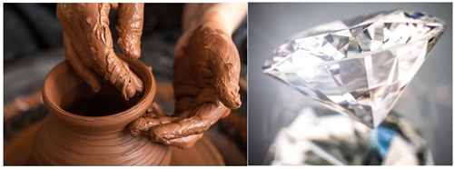 "களிமண்ணைப் பாண்டமாக உருவாக்குவதும், இயற்கையில் கிடைக்கும் வைரத்தை மின்னல் போல் பளபளக்கச் செய்வதும்தான்" என்று இருவரும் சொன்னார்கள்.