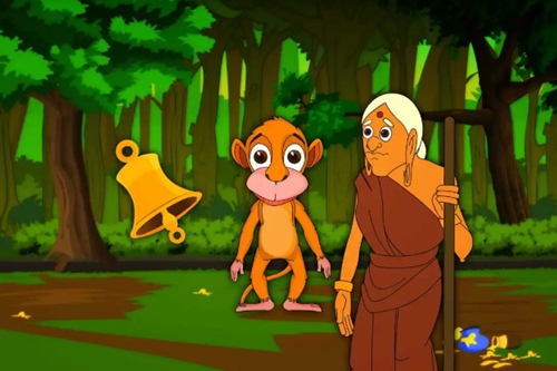 அந்தக் குரங்குகள் அவனிடமிருந்த கோயில் மணியை எடுத்து விளையாண்டது. அந்தச் சத்தம், குரங்குகளுக்குப் பிடித்துப் போனதால், மணியை எடுத்துக் கொண்டு மலைமேலிருந்த தங்களோட இடத்துக்கு கொண்டு போனது.