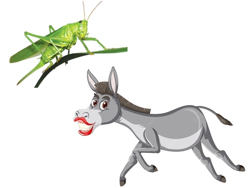 அந்த ஒலியைக் கேட்ட கழுதை, வெட்டுக் கிளியின் அருகில் சென்றது.