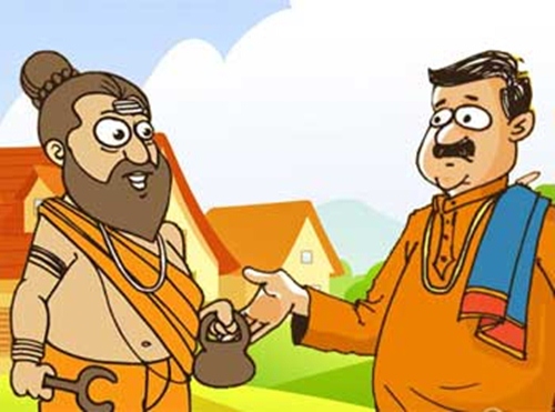 தாடிக்காரன் ஒருவன் காட்டின் உள்பகுதியிலிருந்து துறவியின் குடிசை நோக்கி ஓடி வந்து கொண்டிருந்தான்.