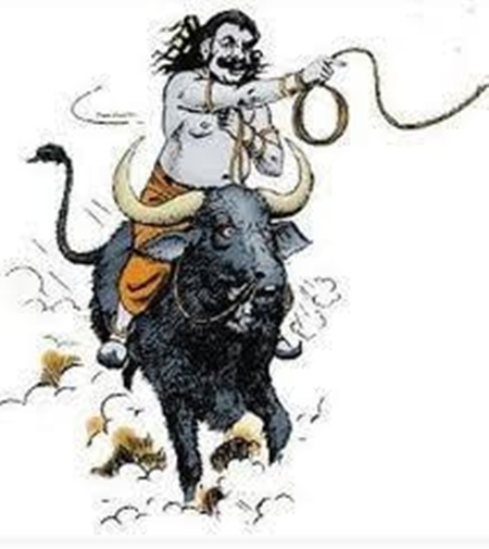 “நீர் பேசிய வார்த்தையால் உயிருக்குத் தப்பிவந்த வாயில்லாத உயிரினம் ஒன்று கொடூரமாக மரணமடைந்தது. அதன் சாபம் உம்மைப் பிடித்தது. மாடு எங்கே என்று கேட்டவனிடம் நீ யார்? எதற்காக மாட்டை விரட்டுகிறாய்? என்று கேட்டிருந்தால் அது விவேகம். அதைத் தெரிந்து கொண்டு, மாட்டுக்குத் தீமை வராமல் பதில் கூறியிருந்தால் அதுவே வாய்மை” என்றான் எமதர்மன்.