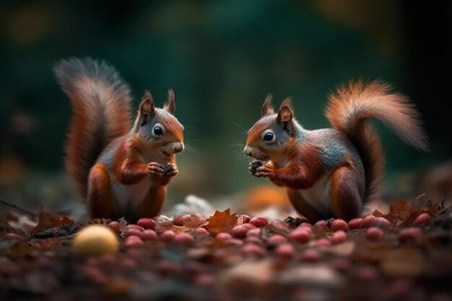 இரண்டு அணில்கள் மரத்தில் ஏறி ஓடி விளையாடிக் கொண்டிருந்தன.