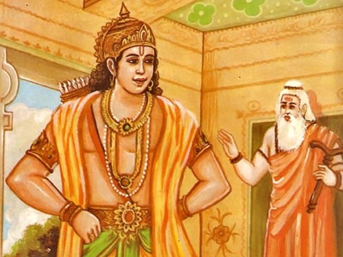 குடிலை நெருங்கியதும் தெரிந்தது, குடில் ஒரு முனிவரின் ஆசிரமம் என. குடிலில் இருந்து வெளிவந்த முனிவர், அரசனைக் கண்டு உள்ளே வரவேற்றார். தன் நிலையை விளக்கிய அரசன், தமது ஊருக்கு எவ்விதம் திரும்புவது என முனிவரிடம் கேட்டான். முனிவர் தம் சீடன் ஒருவனை மன்னனைத் தேடும் படைகளை இங்கே அழைத்து வரும்படி அனுப்பினார். அரசன் அப்போது தான் குடிலின் பின்னால் உள்ள தோட்டத்தை கவனித்தான்.