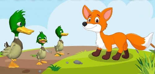 பசியோடிருந்த நரி ஒன்று வழியில் வந்த வாத்துக் கூட்டத்தைப் பார்த்ததும் நயவஞ்சகத்துடன், ‘எங்கள் குல வழக்கபடி ஒரு வாத்தை சாப்பிட்டுச் சென்றால்தான் எங்கள் சாமி அருள் புரியும் சீக்கிரம் உங்களில் யாரெனச் சொல்லுங்கள்’ என்றது.