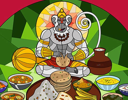 பரமபக்தனான ஆஞ்சநேயனுக்கு விருந்து செய்விக்க வேண்டுமென்று ஒரு நாள் சீதாப்பிராட்டிக்குத் தோன்றியது.