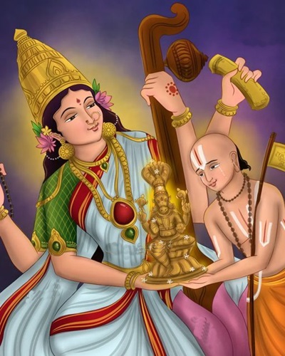 அதையறிந்த சரஸ்வதி மாதா, ராமானுஜரை மிகவும் பாராட்டி அவருக்கு ‘ஸ்ரீபாஷ்யகாரர்’ என்று திருநாமமிட்டு தனது ஆராதனைத் தெய்வமான சிறிய அளவிலான லட்சுமி ஹயக்ரிவர் விக்ரஹ மூர்த்தியை அவருக்குப் பரிசாகவும் அளித்தாராம்.