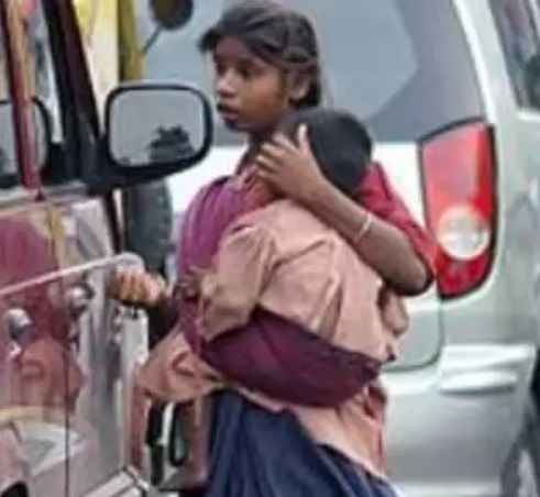 காரில் இருந்த பணக்காரப் பெண்மணி, அந்தப் பிச்சைக்காரியின் கையில் இருந்த குழந்தைகளும் உருக்கமாகப் பிச்சை கேட்டபோது அவர்கள் மீது இரக்கம் கொண்டார்.