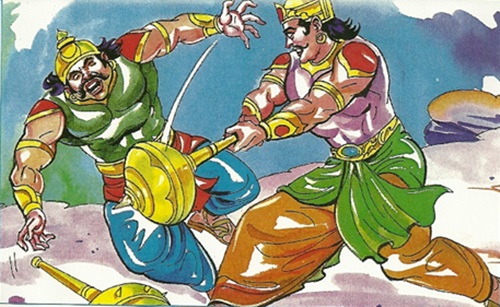 பிறகு போர்க்களத்தில் பீமன் துரியோதனனின் தொடையை முறித்தான். அதன் காரணமாக துரியோதனன் இறந்தான்.