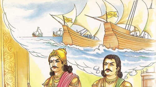 அங்கு வந்த தரன், "வணிகனே! உன் மரக்கலம் மூழ்கவில்லை. எல்லாம் எங்கள் வித்தியாதரரின் மாயம். எங்கள் அரசர் உங்களை அழைத்து வரச்சொன்னார். உங்களுக்குப் பெரும் சிறப்புகள் கிடைக்க இருக்கின்றன” என்று பணிவுடன் கூறினான்.