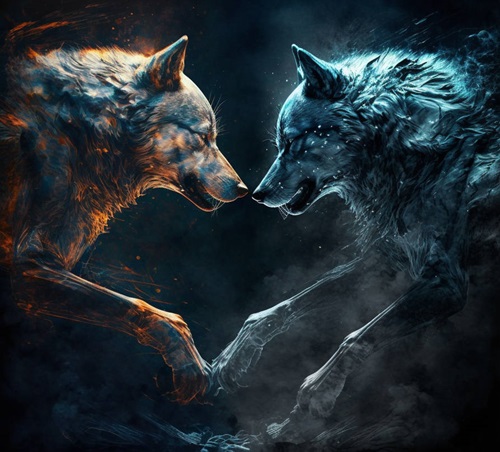‘‘இந்த இரு ஓநாய்களையும் என்னுள் வைத்துக் கொண்டு வாழ்வது எனக்குச் சில சமயங்களில் மிகவும் கடினமாக இருக்கிறது. ஏனெனில், அவை இரண்டும் எப்போதும் என் உணர்ச்சிகளின் மேல் ஆதிக்கம் செலுத்த முயன்று கொண்டிருக்கும்’’