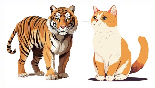 ''நானும் புலி மாதிரியே இருக்கேன். முகமும் உடம்பும் அது மாதிரிதான். என்ன, என்னை விட புலியண்ணன் கொஞ்சம் பெரிசா இருக்காரு, அவ்வளவுதான்'' என்று பூனை தன்னைத்தானே நக்கிக் கொண்டது.