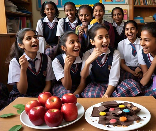 ஒரு மாணவன் ஓர் அட்டையில் அவசர அவசரமாக எழுதி அந்த சாக்லேட் கூடையில் வைத்தான்,