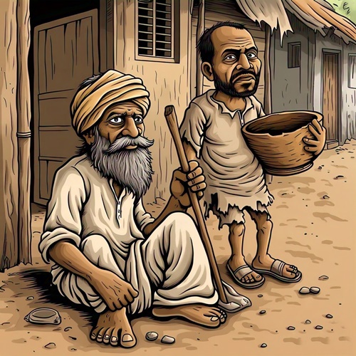 அந்த ஏழை, தெருவில் பிச்சைக்காரர்கள் யாராவது வந்தால், அவர்களை அடித்து விரட்டாமல், செல்வந்தர் வீடுகளைத் தனது ஆள்காட்டி விரலால் அடையாளம் காண்பித்து, அந்தப் பிச்சைக்காரர்களுக்கு உதவி செய்து வந்தான்.