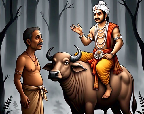 யமதூதன், தான் கொண்டு வந்திருந்த பட்டியலைப் பார்த்து இவனிடம், ''ஒரு வருடத்திற்குள் குறிப்பிட்ட 14 நபர்களை யமலோகத்திற்கு அழைத்துச் செல்வதே எனக்குத் தரப்பட்ட பணி. நீதான் முதல் ஆள். என்ன, போகலாமா?'' என்று கேட்டார்.