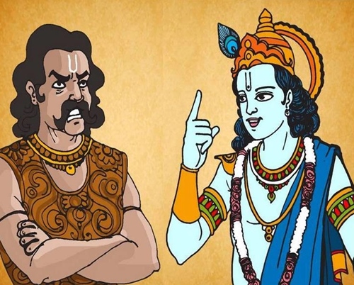 பாண்டவர்களின் தூதராக ஸ்ரீகிருஷ்ணர் துரியோதனனின் அரண்மனைக்குச் சென்றார்.