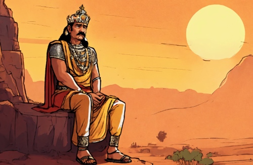 தனக்கு உதவப்போய்தானே வேடன் இறந்தான் என்ற துக்கத்துடனேயே அவன் தன் ராஜ்யத்தை அடைந்தான்.