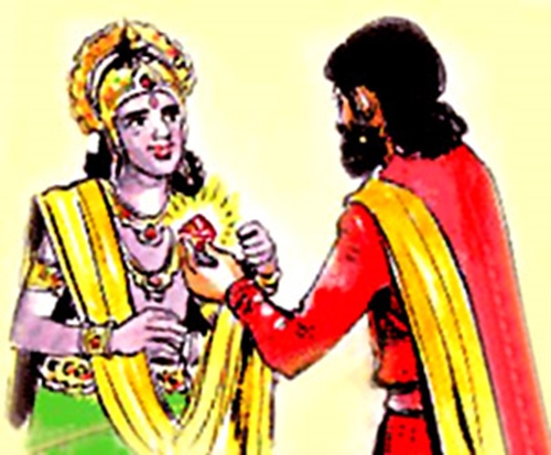 "சூரிய பகவானே! தாங்கள் உங்களுடைய மணி ரத்தினத்தைக் கொண்டு மூன்று உலகங்களை ஒளி பெறச் செய்து கொண்டிருக்கிறீர்கள். அது போன்ற ஒரு மணி என்னிடம் இருக்கக் கூடாதா என்று நான் ஏங்குகிறேன். தயவு செய்து, தாங்கள் இந்த மணியை எனக்குத் தந்து அருள் புரிகிறீர்களா?’’ என்று வேண்டினான்.