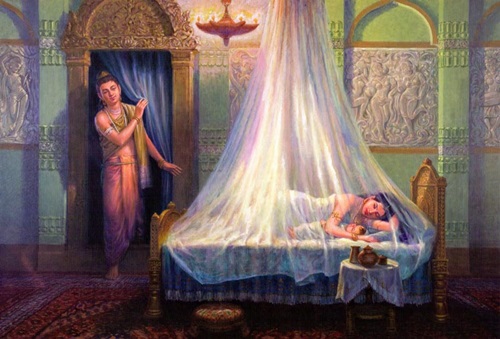 அடுத்து அவர் மனைவி, “நீங்கள் இந்த அரண்மனையைவிட்டுப் போகாமல் இங்கேயேத் தங்கி இருந்தால் ஞானம் பெற்றிருக்க முடியாதா?” என்று கேட்டாள்.