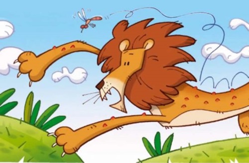 முதலில் தன் காதருகே வந்து ரீங்காரமிட்ட கொசுவைப் பற்றிச் சிங்கம் அலட்சியமாக நினைத்தது. திரும்பத் திரும்ப கொசு தொந்தரவு கொடுக்கவே சிங்கத்திற்குக் கோபம் வந்துவிட்டது.