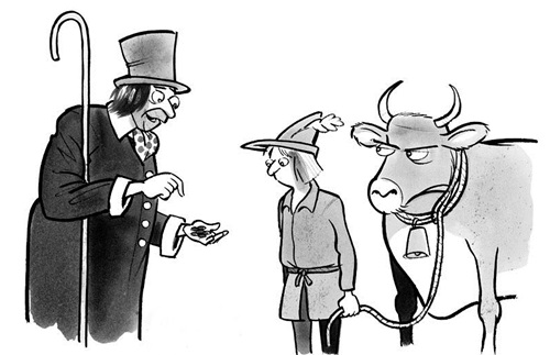 குழம்பிப் போன விவசாயி, “இது என்ன பைத்தியக்காரத்தனமான கேள்வி? பசுதான் என்னோடு வருகிறது”'என்றான்.