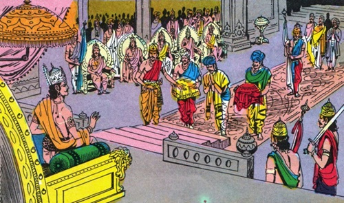 வேறு தேசத்தைச் சேர்ந்த வேறு மொழி பேசுகிற குற்றவாளிகளைப் பிடித்து வந்தவர்கள், அவர்களின் குற்றங்களை விளக்கிச் சொல்லச் சொல்ல அரசன் தண்டனை விதித்துக் கொண்டிருந்தான்.