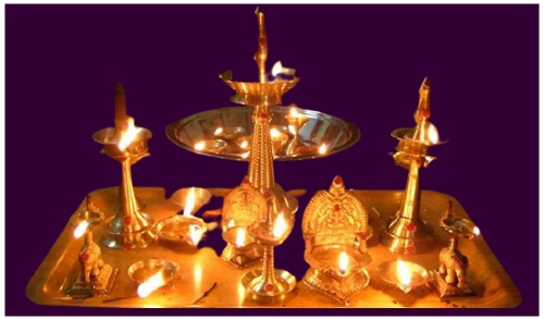 இறை வழிபாட்டில் எடுத்து வலமிட்டுக் காட்டும் திரி விளக்கு.