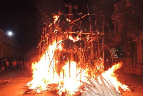 திருக்கார்த்திகை நாளில் அனைத்துச் சிவாலயங்கள், முருகன், அம்மன் கோயில்களின் எதிரில் பனை ஓலைகளை ஒரு மூங்கில் கம்பில் கட்டி, கோபுரம் போலச் சொக்கப்பனை அமைத்து, அதனை சுவாமிக்கு பூஜை செய்த விளக்கைக் கொண்டு ஏற்றி, எரியச் செய்வார்கள். இந்தச் சொக்கப்பனை ஏற்றப்பட்டு எரியும் போது அஞ்ஞானமும் ஆணவமும் எரிக்கப்படுவதாக சிவ தத்துவம் சொல்கிறது.