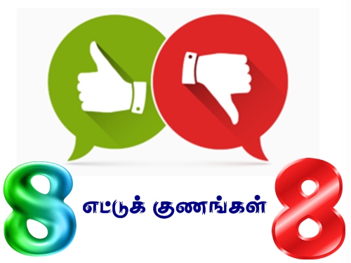 எட்டுக் குணங்கள். இவை, நல்லவை தீயவை என இரு வகைகளாகப் பிரிக்கப்படுகின்றன.